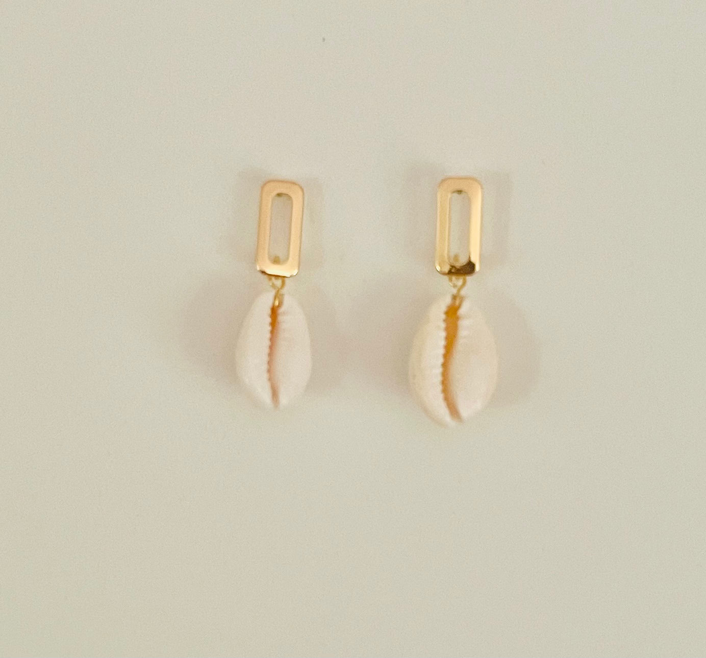 Materials: 18k gold plated brass stud earrings with cowrie shell