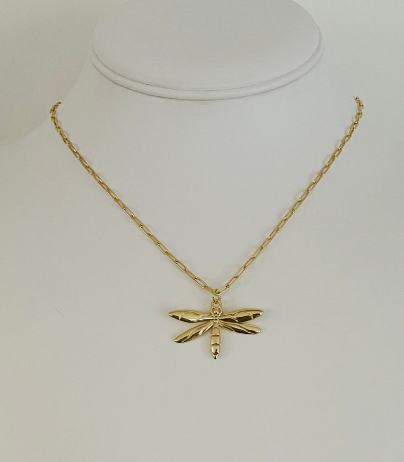 18k gold plated brass mini paper clip chain with dragonfly pendant