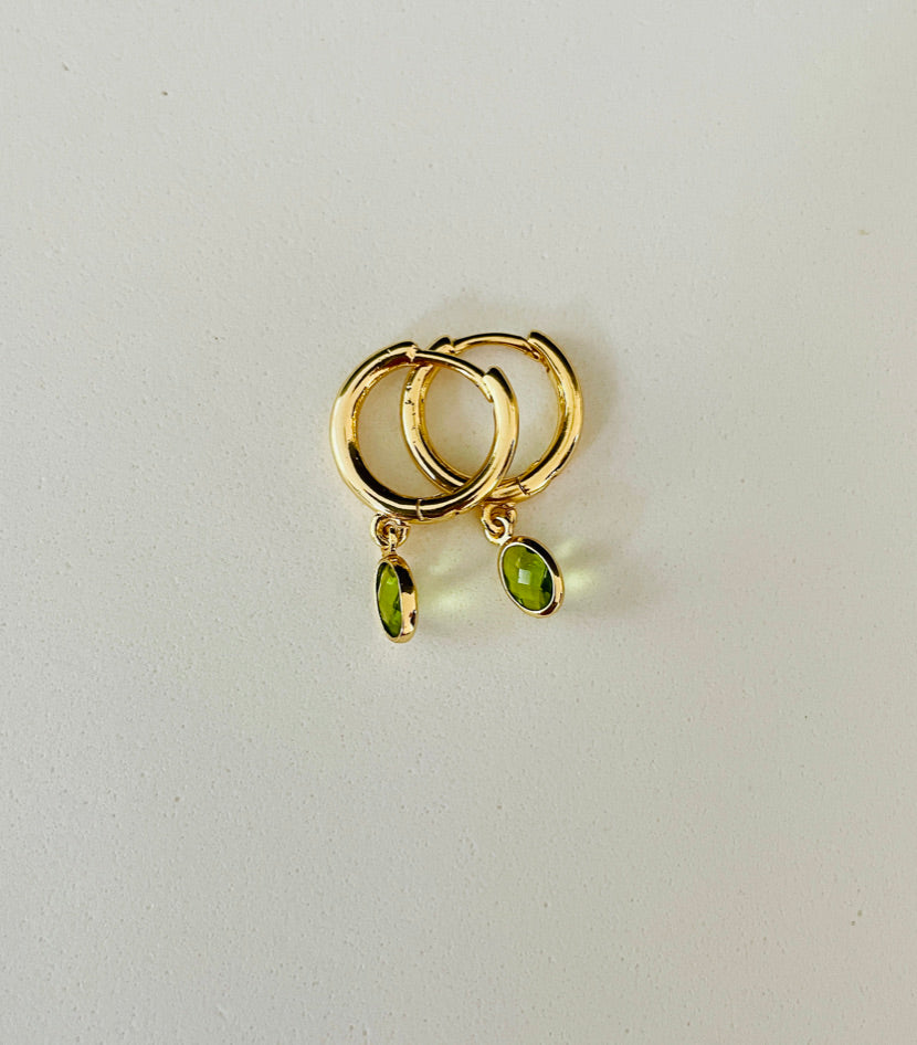 These fun hoops are crafted from 18k gold-plated brass and sparkle with dangling colorful glass charms for a lively touch.